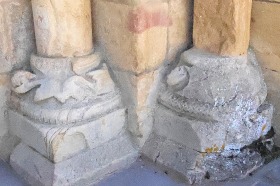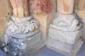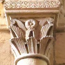 Bases de colonnes 付柱の基部は、葉や幾何学模様で装飾されています。 Les bases des colonnes engagées sont décorées de feuillages ou de motifs géométriques. |