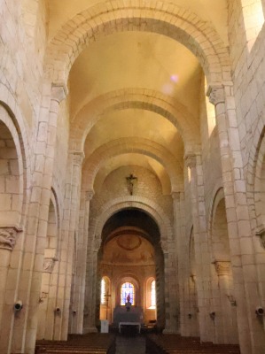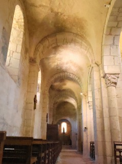 | 現在のロマネスクの教会堂は、ブリオネ産の黄色い石灰岩を用いて2段階で建設されました。東部分は小さな切り石が用いられており1070‐1090年の間、大きな粗石で形成された身廊は、1090‐1110年の間に建設されました。 身廊と側廊のベイはそれぞれピラスターのバットレスで区切られ、隅切りされた半円型の開口部がひとつずつ設けられています。 |
