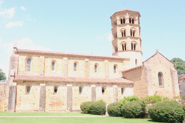 | アンジーの小修道院は、クリュニー修道院の影響を強く受けた地域の中心に位置し、同修道院傘下の施設に囲まれていたにもかかわらず、創設以来、オータンのサン・マルタン修道院の管轄下にありました。それにもかかわらずアンジーとクリュニーとの関係は、聖オディロがユーグ・ド・ポワティエの聖遺物崇敬に関与したこと(後述参照)や、アンジーの教会堂再建を支援したことからも示唆されるように、良好なものであったと思われます。 アンジーの建築がクリュニーの特徴が認められるのは、恐らく両者がベネディクトゥスの霊性を共有し、更にオディロの関与等を通じて制度的にも近しい関係にあったためと考えられます。 |
