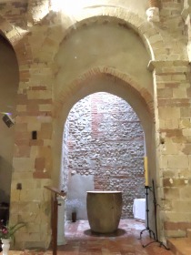 | ロマネスク・スタイルのカブスタニーの教区教会は11・12世紀に建設されました。その後14世紀に木造天井が再建され、中世末にはゴシック・スタイルの祭室が2つ増築されました。 1930年代、教会堂の拡張工事の際にロマネスクのタンパンが発見され、このことにより教会堂の名は世に広く知られるようになりました。 L'église paroissiale de Cabestany, de style romane, a été construite entre les 11e et 12e siècle. Elle a fait l'objet de plusieurs remaniements, notamment la reconstruction de la charpente au 14e siècle et l'adjonction de deux chapelles latérales gothiques à la fin du Moyen Age. Dans les années 1930, lors des travaux d'agrandissement de l'édifice, le tympan roman a été redécouvert, contribuant à faire connaître l'église au-delà du cadre local. |