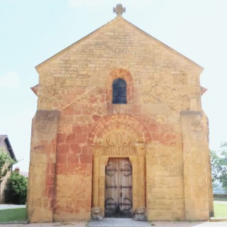 | Façade occidentale 右は教会堂を南西から見たイメージです。 2つの平らなバットレスに囲まれた西ファサードには、ブリオネ地方で最も美しいもののひとつとされるロマネスクの入り口があります。 この入り口は、19世紀初頭、ヴァンドゥシー教区とモンソー=レトワール教区の合併に伴い、より多くの信徒を収容できるようファサードの前にポーチが増築されたため、見えなくなってしまいました。 このポーチは20世紀初頭に取り壊されましたが、現在もなおポーチの痕跡がファサードの壁面に観察されます。 Encadrée de deux contreforts plats, la façade occidentale abrite un portail roman comptant parmi les plus beaux du Brionnais. Celui-ci a été dissimulé au commencement du 19e siècle par l'adjonction d'un porche devant la façade pour accueillir plus de fidèles, à la suite de la réunion des paroisses de Vindecy et de Montceaux-l'Etoile. Ce porche a été démoli au tout début du 20e siècle, lors des travaux de restauration. Des traces de cette structure restent toutefois visibles sur le mur de la façade. |