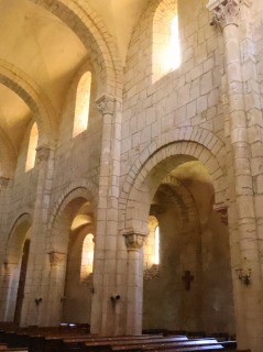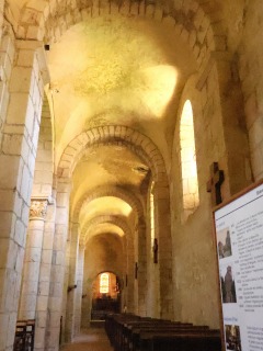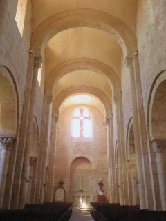 | 現在のロマネスクの教会堂は、ブリオネ産の黄色い石灰岩を用いて2段階で建設されました。東部分は小さな切り石が用いられており1070‐1090年の間、大きな粗石で形成された身廊は、1090‐1110年の間に建設されました。 身廊と側廊のベイはそれぞれピラスターのバットレスで区切られ、隅切りされた半円型の開口部がひとつずつ設けられています。 |