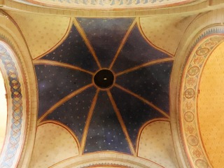 | Croisée du transept トランセプト交差部は、トロンプ技法による八角形のクーポルで覆われています。クーポルは柱頭を戴く付柱を備えた十字型のピラーに支えられた半円型の二重のアーケードの上に載っています。 La croisée du transept est couverte d'une coupole octogonale sur trompes, portée par quatre arcades en plein cintre à double rouleau retombant sur des piliers cruciformes à colonnes engagées et chapiteaux. |