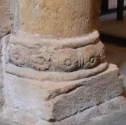 Bases de colonnes 付柱の基部は、葉や幾何学模様で装飾されています。 Les bases des colonnes engagées sont décorées de feuillages ou de motifs géométriques. |