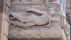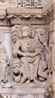 | 西ギャラリーの柱頭彫刻は他のギャラリーに比べ、テーマにあまり統一感が見られません。下記に挙げる他に、ステファノの石打ち刑、ライオンと格闘するサムソンの図が見られます。 | ||