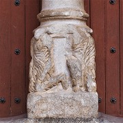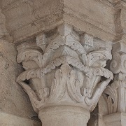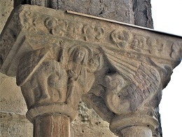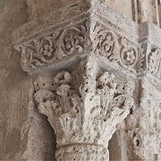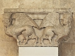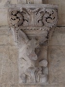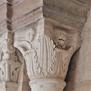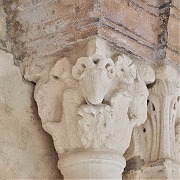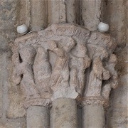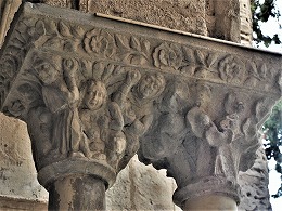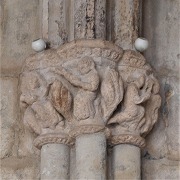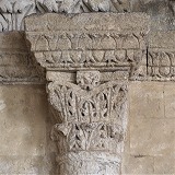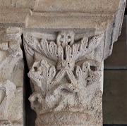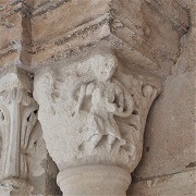 | Les thèmes des chapiteaux sculptés de la galerie occidentale sont peu unis. On trouve autrement la lapidation de saint Etienne et Samson terrasant le lion. |