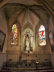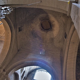 Tour de la croisée du transept トランセプト交差部上には、12世紀に造られたロマネスクの鐘楼にかわり、13世紀初めに、現在の四角い塔が造られました。 4層からなる塔は徐々に細くなり、42メートルの高さに達します。 2つの最初の2層は、ロンバルディア帯で装飾されていて、3層目には、コリント式の柱頭があるピラスターが見えます。また、これら3つの層には、半円型の開口部があります。 最上層は17世紀に造り直されています。 Le clocher du 12e siècle sur la croisée du transept, a été remplacé, au début du 13e siècle, par la tour carrèe actuelle. Composée de quatre étages en retrait les uns sur les autres, elle s'élève à 42 m. Les deux premiers étages sont décorés de bandes lombardes, et le troisième de pilastres à chapiteaux corinthiens. Ces trois étages sont percés des baies en plein cintre. L'étage supérieur très court a été refait au 17e siècle. |