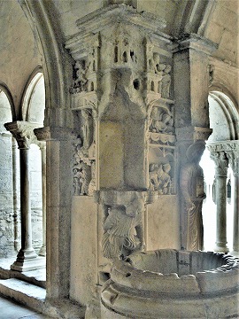 L'iconographie de la galerie sud est consacrée à la vie de saint Trophime, d'après le récit dans un poème rédigé en 1221-1226. |