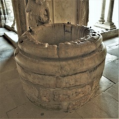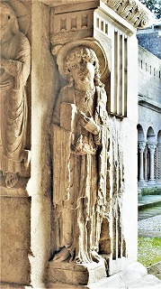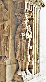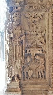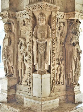 北東の角のピラー中央には、7世紀近くの間教会のメインの守護聖人だったステファノが立っています。現在の第一の守護聖人トロフィムスが彫られた北西角のピラーと対称をなした構成です。 |
