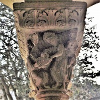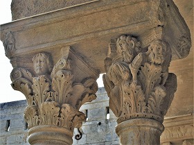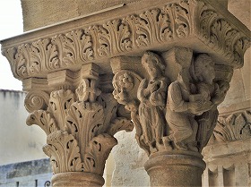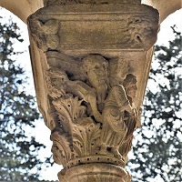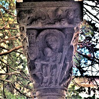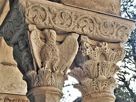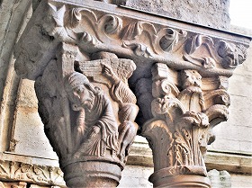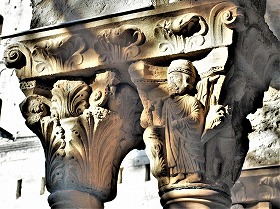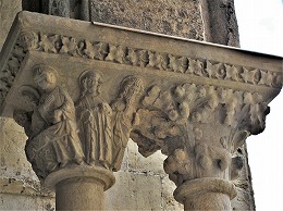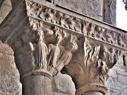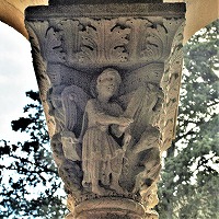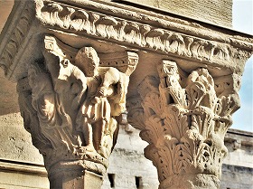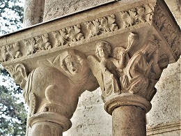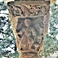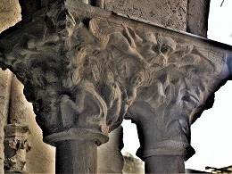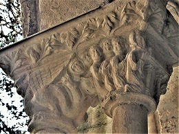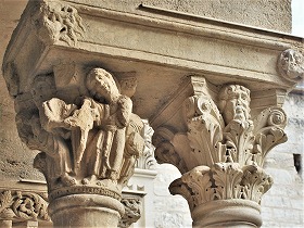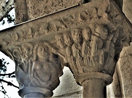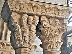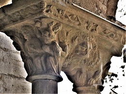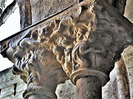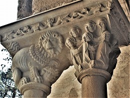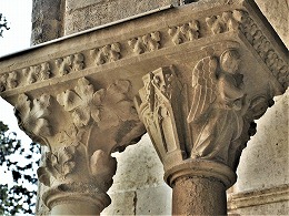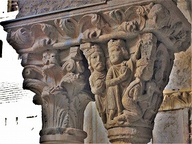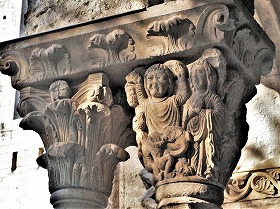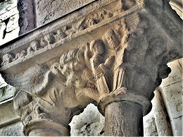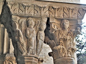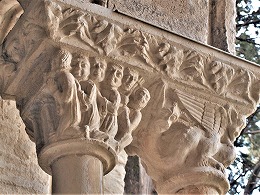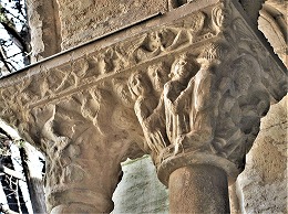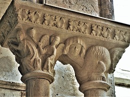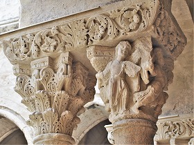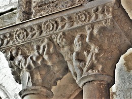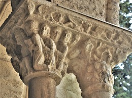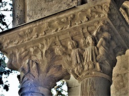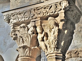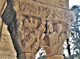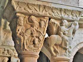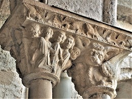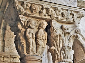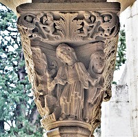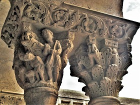 Les chapiteaux sculptés de la galerie orientale, évoquent principalement l'encfance du Christ. |