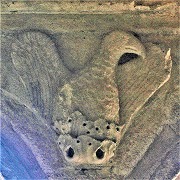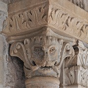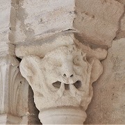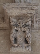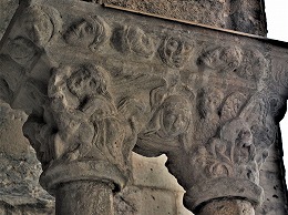 Chapiteaux sculptés de masques monstrueux des colonnettes |