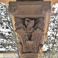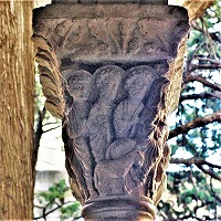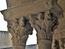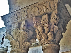 小円柱の柱頭には、植物模様、モンスター、鳥等が刻まれています。 |