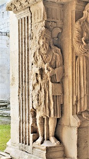 | Deuxième pilier intermédiaire de la galerie orientale La statue centrale du pilier a disparu et seules subsistent celles qui l'encadrent . |