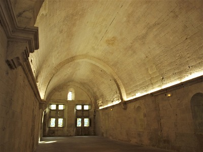 Dortoir やや尖頭型になったヴォールトで覆われた共同寝室は、東ギャラリーの東側にある建物の2階にあります。この寝室は12世紀又は13世紀初めに遡るとされます。 Voûté en berceau légèrement brisé, le dortoir se situe à l'étage supérieur du bâtiment du côté oriental de la galerie est. Il daterait au 12e ou au début du 13e siècle. |