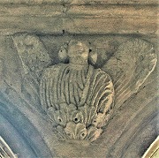 | 中央柱の柱頭には各面に一人ずつ天使が彫刻されています。西正面には教会堂の番人である天使、北側面には巻物を手にした天使、南側面には天国への扉を指し示す天使、東側面にはフィラクテールを持った天使が刻まれています。 | ||