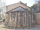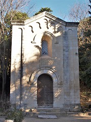 サン・トノラ教会は、アリスカンの墓地の南東の端に位置します。 12世紀に遡るプロヴァンス・ロマネスク・スタイルの教会堂は、完成されることなく、5ベイが建設予定だった身廊は、僅か1ベイしか造られませんでした。身廊は13世紀に壁で閉じられました。建設が断念された西側の4ベイの部分には、屋根がありません。 この屋根のない部分の側壁は、カロリング朝時代の遺構で、高い部分は11世紀に造り足されたようです。 L'église Saint-Honorat est située à l'extrémité sud-est de la nécropole des Alyscamps. L'église de style roman provençal datant du 12e siècle n'a pas été achevée : la nef devait comporter cinq travées, dont une seule a été réalisée ; elle a été fermée par le mur provisoire au 13e siècle. Les quatre travées occidentales prévues sont découvertes. Les murs latéraux nord et sud de la nef découverte, sont les vestiges de l'édifice carolingien : ils ont été surélevés au 11e siècle. 1785年、身廊が建てられる筈だった4ベイのスペースに、街中に散在していた古代の石棺、墓碑、霊廟の遺構などが集められ、屋外のミュージアムとなりました。 En 1785, l'espace de la nef découverte, est devenu le musée en plein air, présentant divers objets archéologiques épars de la ville : sarcophages, stèles funéraires, restes de mausolées antiques. |