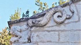 少し離れたところに、16世紀に建設されたポルスレ家の納骨所である礼拝堂があり、この建物もフランス歴史的記念物に指定されています。 Peu après, se trouve la chapelle des Porcelet, caveau familial, édifiée au 16e siècle. Elle est classée au titre des monuments historiques. |