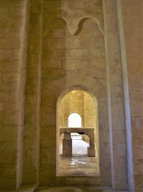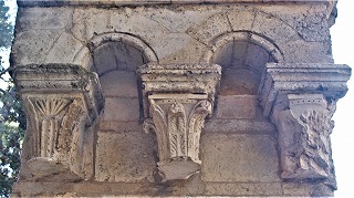 | L'abside est flanquée de deux absidioles nord et sud, dans le prolongement de chaques bas-côté. Elles sont également surélevées. | Les absidioles communiquent avec l'abside par la petite porte en plein cintre, surmontée de l'ornement des arcatures. |
