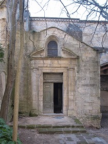 | ロマネスク期に造られたサン・ジュネ祭室のところに見られる入り口は今日壁で閉じられていますが、12世紀に遡ります。この入り口には、同世紀の壁画の痕跡が残ります。 | 今日、教会堂内へは、北側廊の北側に建つ、15世紀に遡る祭室にある入り口からアクセスします。 | |||