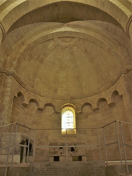 Croisée du transept トランセプト交差部は、トロンプ技法によるクーポルで覆われています。クーポルは13世紀に造られました。この上に、八角形の2層の塔が聳えます。 La croisée du transept est couverte d'une coupole sur trompes, réalisée au 13e siècle. Elle est surmontée de la tour-lanterne octogonale de deux étages. 13世紀に遡るクーポルの中心には、円形のリブで縁取られたオクルスがあり、そこから8つのリブがはしります。 Au centre de la coupole, est percé un oculus, bordé d'une nervure circulaire, autour duquel rayonnent les huit nervures. |