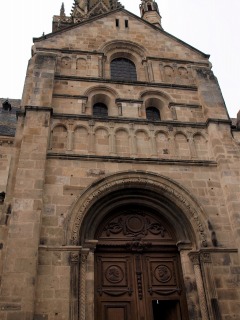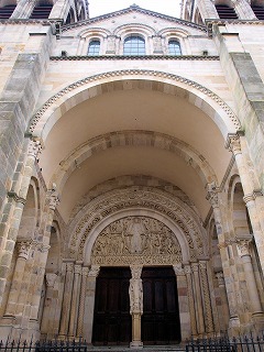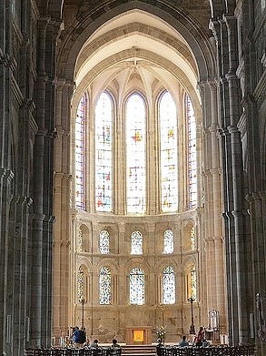| Choeur et abside 中央鐘楼の火災の後、内陣とアプスは15世紀にゴシック・スタイルで再建されました。 尖頭型のヴォールトで覆われた内陣は2ベイからなり、3層の縦構造は、トランセプトのそれと同じです。 アプスはオジーヴ・ヴォールトで覆われ、そこにはランセットの開口部が見えます。しかしアプスの下の2層は1120年以前に建てられたロマネスク時代のもので、ここは大聖堂の中で最も古い部分です。 2層の7つの連続したアーチは、柱頭がある溝彫りされたピラスターを従えています。この連続アーチにはそれぞれ5つの開口部があり、下層の開口部は小円柱とアーキヴォールトで装飾されています。 Après l'incendie du clocher central, le choeur et l'abside ont été reconstruits au 15e siècle en style gothique. Voûté en bervceau brisé, le choeur est de deux travées, et son élévation à trois étages reprend celle du transept. L'abside est voôtée d'ogives, où on trouve les grandes lancettes. Mais il reste deux étages inférieurs de l'abside romane, construits avant 1120, qui sont les parties plus anciennes de l'édifice. On y voit deux séries de sept arcatures, flanquées de pilastres cannelés à chapiteaux. Les arcatures entourent, à chaque étage, cinq baies, dont celles en bas sont décorées de colonnettes et d'archivolte. 内陣の両脇には、交差ヴォールトで覆われた2ベイからなる側廊があります。これら側廊の先には、サント・マリ−・マドレーヌとサント・マルタに捧げられた後陣祭室があります。これら2つの後陣祭室はゴシック期に建設され、19世紀に再建されました。 Le choeur est flanqué des bas-côtés de deux travées, voutés d'arêtes sur doubleaux brisés à double rouleau. Ils sont prolongés par deux absidioles, dédiées à sainte Marie-Madeleine et à sainte Marthe, reconstruites à l'époque gothique et restaurées au 19e siècle. |