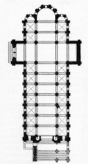| ラテン十字の形をした教会堂は東向きに建てられておらず、アプスは南にあります。 大聖堂のプランは、ナルテックス、両脇に側廊がある7ベイからなる身廊、張り出したトランセプト、両脇に側廊がある2ベイからなる内陣、両脇に後陣祭室があるアプスからなります。 オータン大聖堂は巡礼教会として建てられましたが、放射状祭室がついた周歩廊はありません。 L'église en croix latine n'est pas regulièrement orienté : l'abside se trouve au sud. Le plan montre un narthex, (suivi par) une grande nef de sept travées, flanquée de bas-côtés, un transept saillant, le choeur de deux travées, flanqué de bas-côtés et une abside flanquée de deux absidioles. La cathédrale d'Autun a été batie comme église de pèlerinage, mais elle ne possède pas de déambulatoire à chapelles rayonnantes. ロマネスクの大聖堂の工事は1120-1147年の間に遡りますが、主な工事は1120-1135年の間に行われました。オータンの大聖堂は、パレ・ル・モニアルの小修道院教会をモデルに建設されました。 1949年、サン・ラザールはマイナー・バシリカに格上げされています。 Le chantier de la cathédrale romane date de 1120 à 1147, mais la plupart des travaux ont été realisés durant les années 1120-1135. Elle a été édifiée sur le modèle de l'église priorale de Paray-le-Monial. L'église obtient le titre de basilique mineure en 1949. |