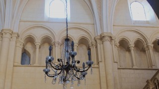大アーケードは尖頭型で、柱頭を戴く円柱を備えた十字型のピラーに繋がります。 2層目には各ベイに2つの半円型のアーキヴォールトがあり、アーキヴォールトは東側の4ベイでは八角形の柱で、西側の2ベイでは円柱の束で結合されています。これらアーキヴォールトは、ゴシックの鉤状装飾がある柱頭から繋がる尖頭型の2つ連続したアーチを取り囲みます。 3層目の半円型の高窓には装飾が見られません。 Les grandes arcades en tiers-point, retombent sur les piliers cruciformes avec colonnes engagées à chapiteaux sculptés. Au deuxième étage, chaque travée comprend deux archivoltes en plein cintre, qui sont réunies par un pilier octogonal dans les quatre travées orientales et par un faiseau de colonnettes dans les deux premières travées. Ces archivoltes encadrent deux arcatures en tiers-point reposant sur les chapiteaux gotiques à crochets. Les fenêtres hautes en plein cintre sont dépourvues d'ornement. |