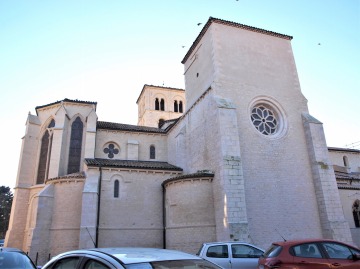 | 教会堂は巨大で、凡そ長さ63メートル、トランセプトの幅29メートルという大きさです。 L'édifice imposant mesure environ 63 m de longueur sur 29 m de largeur au niveau du transept. Flanc sud 右は教会堂を南東から見たイメージです。身廊の高窓は、柱頭彫刻がある小円柱で装飾されています。 Les fenêtres hautes de la nef sont décorées de colonnettes à chapiteaux sculptés. 教会堂の南側には、回廊、チャプター・ハウス、貯蔵室、看護室、墓地、もうひとつの教会堂といった修道院の建物がありましたが、現在は全て失われています。 Du côté sud de l'église, se trouvaient des bâtiments conventuels, entièrement disparus : un cloître, une salle capitulaire, un cellier, une infirmerie, un cimetière et une autre église. |