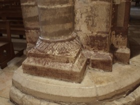 Elévation de la nef 身廊の縦構造は2層です。尖頭型の大アーケードの上に、小円柱で装飾された高窓があります。 La nef s'élève sur deux étages : les grandes arcades brisées sont surmontées de fenêtres hautes avec colonnettes. Bases de piliers cruciformes 一部の身廊の十字型ピラーの円柱の基部に、植物モティーフの彫刻装飾が見られます。 Quelques bases de colonnes engagées des piliers cruciformes dans la nef, montrent le décor sculpté de feuillages. |