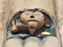 西ファサードの入り口が設けられた張り出した構造部分の上には、ビエットで装飾されたコルニッシュを支える、人間や動物の頭が彫刻されたモディヨンが並びます。 |