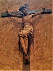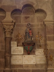 | Le Christ lépreux 南側廊に、彩色されたキリストの木像があります。これはブリウド近郊のコミュニティ、バジャスのハンセン病療養所にあったもので、このことから「ハンセン病のキリスト」と呼ばれます。伝承によれば、ハンセン病患者だった彫刻士が、病の治癒を願ってこの像の上に横たわったところ、病はこのキリスト像に移ったそうです。 On trouve un Christ en bois polychrome datant du 14e siècle dans le bas-côté sud. Cette statue provient de l'ancienne léproserie de Bajasse, près de Brioude, d'où son nom de "Christ lépreux. La légende veut que le sculpteur lépreux se serait allongé sur cette statue en implorant la guérison : la maladie se serait alors transférée à la statue. |