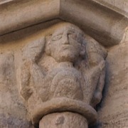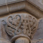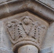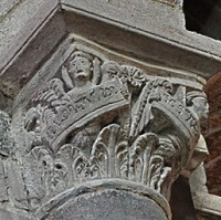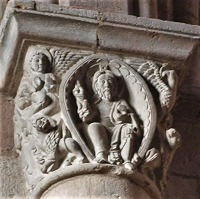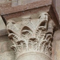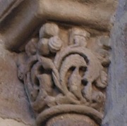 Porche sud 南側廊の2番目のベイに造られた南ポーチは、1100-1140年の間に建てられました。柱頭彫刻で装飾された開口部は、半円型で、二重アーチがあります。 南北両ポーチとも、上階はトリビューンになっています。 Situé dans la deuxième travée du bas-côté sud, le porche sud a été construit entre 1100 et 1140. Ses baies, ornées des chapiteaux sculptés, ouvrent en arc en plein cintre à double rouleau. Chaque porche est surmonté d'une tribune. |
