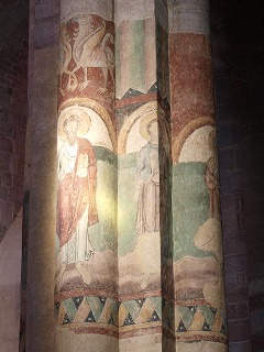 ナルテックスの上階部分の建設は、1100-1140年の間に遡ります。シャペル・サン・ミシェルを飾るフレスコ画は、南側廊からでも目にとまります。 |