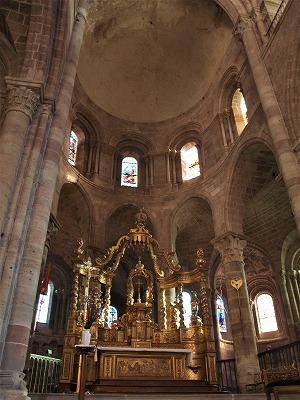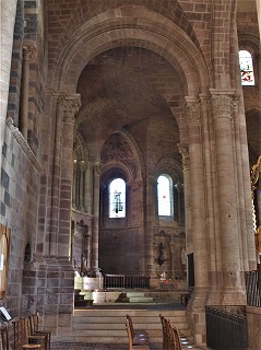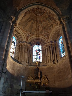 交差ヴォールトに覆われた周歩廊は、5つの放射状祭室に面しています。周歩廊にも半円型の開口部があります。 |