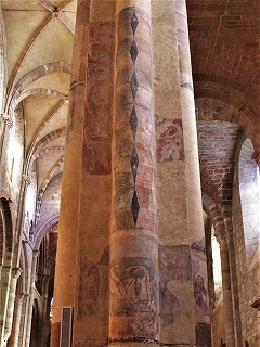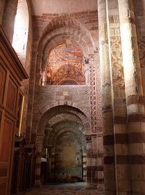 L'étage supérieur du narthex a été construit entre 1100 et 1140. Les fresques de la chapelle Saint-Michel s'aperçoit même depuis le bas-côté sud. |