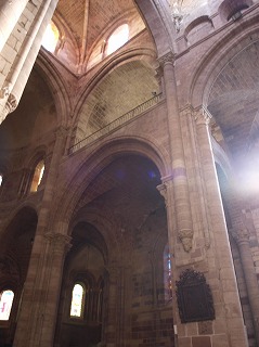 身廊の縦構造は2層です。やや尖頭型になった二重アーチがある大アーケードは、四面に半円柱がついた十字型のピラーに繋がっています。大アーケードの上には、高窓とバラ窓があります。 | |