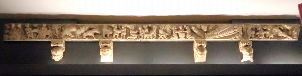 | Claveaux d'un arc これらの白大理石製のアーチ石はラグラスのサント・マリー修道院教会の入り口にあったものとされ、葉、果実、花が彫刻されています。石の上部のフリーズは、人間やモンスターの頭、花モティーフで装飾されています。 特定の石には上部に、ROTBERTUS (Robert)又はILELMUS (Willelmus: Guillaume)という銘が刻まれています。 Ces claveaux en marbre blanc proviennent probablement du portail de l'église abbatiale Sainte-Marie de Lagrasse. Ils sont ornés de feuillages, de grappes de fruits et de fleurs. La frise dans leur partie supérieure présente des têtes humaines ou monstrueuses, ainsi que des motifs floraux. Certaines pièces portent dans leur partie haute, des inscriptions "ROTBERTUS (Robert) " ou "ILELMUS (Willelmus : Guillaume)". ラグラスにあるベネディクト会のサント・マリー修道院は、8世紀にアニアヌのベネディクトゥスの弟子の一人、ニムフリディウスによって設立されました。アーチ石の他に、カブスタニーの匠が製作したとされるモンスターを表現したレリーフや柱頭彫刻が現地に残ります。 |
