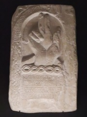 Bas-relief : main deDieu 神の手を表現したこの板は、エル・ポルト・デ・ラ・セルバ(ジローナ県)の教区教会の南壁にあるものですが、元来はサン・ペラ・ダ・ローダス修道院教会の入り口の上部を飾っていたものと考えられています。 Cette plaque représentant la main de Dieu provient du mur méridional de l'église paroissiale d'El Port de la Selva dans la province de Gérone. Elle aurait été installée à l'origine la partie supérieure de la porte de l'église du monastère de Sant Pere de Rodes. |