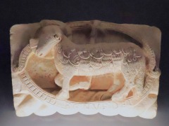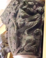 | Sarcophagede saintSaturnin サン・ティレールの修道院教会にあるこの「石棺」と呼ばれる作品は、遺体を収容するには小さいため、むしろ聖遺物入れだったと考えられます。 恐らく元来修道院教会内陣に主祭壇として設置されていましたが、現在はその南後陣祭室の祭壇として利用されています。 この作品は白大理石製で、3世紀のトゥールーズ初代司教であった聖サトゥルニヌスの殉教にまつわる場面が3面にわたって描かれます。 |