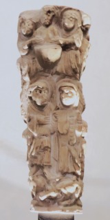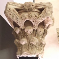 | パッサにある11世紀に創設されたモナスティル・デル・カンプ小修道院の教会堂西入り口にある、セレの白大理石を用いた2つの柱頭です。柱頭は2面に彫刻装飾が施されています。 | ||