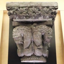| Deux chapiteaux en marbre blanc de Céret, sculptés sur deux faces, proviennent du portail occidental de l'église du prieuré du Monastir del Camp à Passa, fondé au 11e siècle. | ||