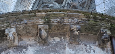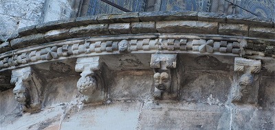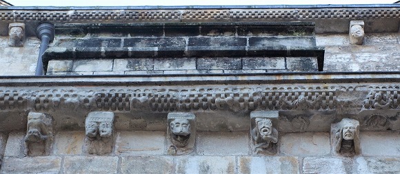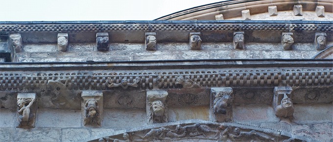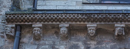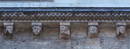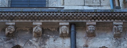 Les modillons montrent, pour la plupart, la tête des hommes, des diables, et des animaux fantastiques. |