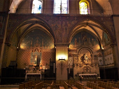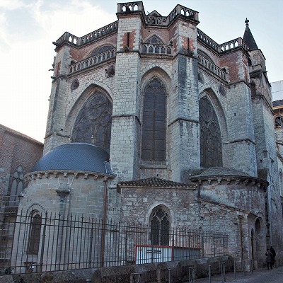 | アプスには複数の祭室が面しています。北と東に13世紀末に遡る後陣祭室、南には当初聖母マリアに捧げられていた、1484年に聖別されたシャペル・プロフォンド、東後陣祭室とシャペル・プロフォンドの間に、1328年-1337年の間に建設されたシャペル・サン・マルタン等があります。 | ||