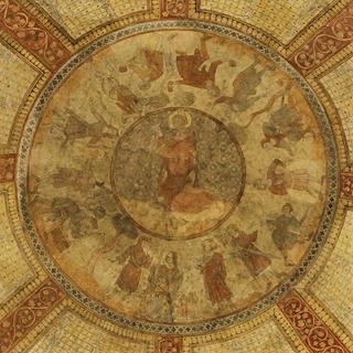 La coupole occidentale conserve les fresques du 14e siècle. Ces peintures ont été mises au jour en 1872, et restaurées en 1891. A l'origine, la coupole orientale aurait également reçu une décoration semblable. |