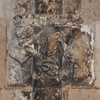 14世紀のフレスコ画には、中央にサン・テティエンヌの殉教の場面、その周りに8人の預言者らが表現されています。預言者達は、それぞれの名前が書かれた巻物を手にし、動物或いは悪徳を象徴するモンスターを足で踏みつけています。 Les fresques du 14e siècle représentent le martyr de saint Etienne au centre, et huit prophètes. Ils tiennent chacun un phylactère sur lequel est inscrit leur nom, et foulent au pied des monstres symbolisant les vices. |