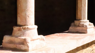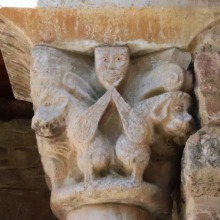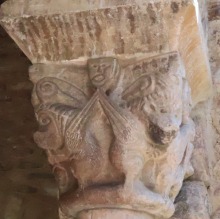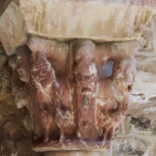 | 柱頭には人物、モンスター、植物、架空及び実在の動物が彫刻されています。聖人伝の柱頭も見られます。柱頭によっては、下部分にひねり模様が彫刻されていたり、また上部分にパルメットの唐草模様の装飾が施されているのが観察されます。柱頭はかつては色塗られていました。 | ||