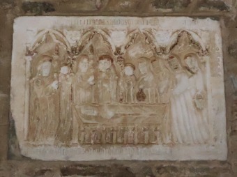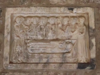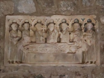 | 白大理石で造られた3つの墓石が南ギャラリーの壁の内側に埋め込まれています。これらはかつて下教会堂の中にありました。 3つの墓石は13・14世紀に修道院長を務めた3人の人物の葬儀の場面を描いています。ここにも彩色の痕跡が認められます。 |