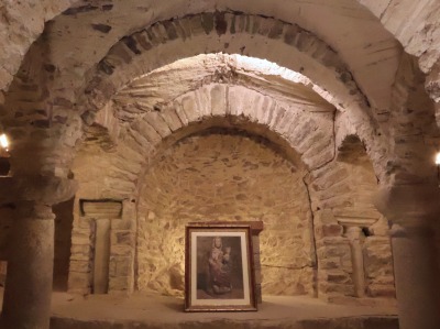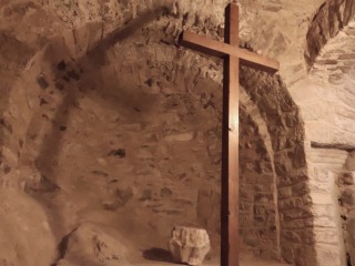 Absides 3つのアプスは半円プランでセミ・ドームで覆われています。 アプスは直接岩を掘って造られています。 Les trois absides sont hémicirculaires en cul-de-four, dont celle centrale est la plus grande. Elles sont directement creusées dans le rocher. |