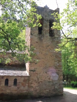 | カステイユの村落とサン・マルタン・デュ・カニグー修道院を結ぶ道沿いに位置する旧教区教会堂は、11世紀、恐らく修道院のすぐ後に、ヴェルネの最初のシャトーの跡地に建てられました。 17世紀半ばに放棄された教会堂は、徐々に朽ちていきました。下部分のみが残り、教会堂と鐘楼は1977‐1979年に再建されました。 Située sur la route reliant le village de Casteil à l'abbaye Saint-Martindu Canigou, l'ancienne église paroissiale a été construite au 11e siècle, probablement peu de temps après l'abbaye, à l'emplacement du château primitif de Vernet. Abandonnée au milieu du 17e siècle, l'église est progressivement tombée en ruines. Seuls les niveaux inférieurs subsistaient, l'église ainsi que le clocher ont été reconstruits entre 1977 et 1979. |