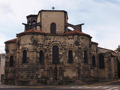 | 教会堂は、サン・サトゥルナンのノートル・ダム教会やクレルモン・フェランのノートル・ダム・デュ・ポール大聖堂のように、黄金のアルコーズと、ヴォルヴィックの黒とグレーの火山岩で建てられましています。これらの鉱物はこの地方で特徴的なものです。 Comme l'église Notre-Dame de Saint-Saturnin et la basilique Notre-Dame-du-Port de Clermont-Ferrand, l'église est construite en minéraux typiques dans la région : l'arkose blond et la pierre volcanique noire ou grise de Volvic. Chevet 内陣を取り囲む4つの放射状祭室は、両側廊同様12世紀に遡ります。 Quatre chapelles rayonnantes, ont été rajoutées au 12e siècle, ainsi que des bas-côtés. |